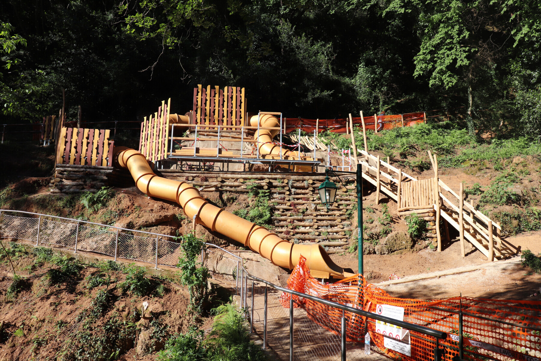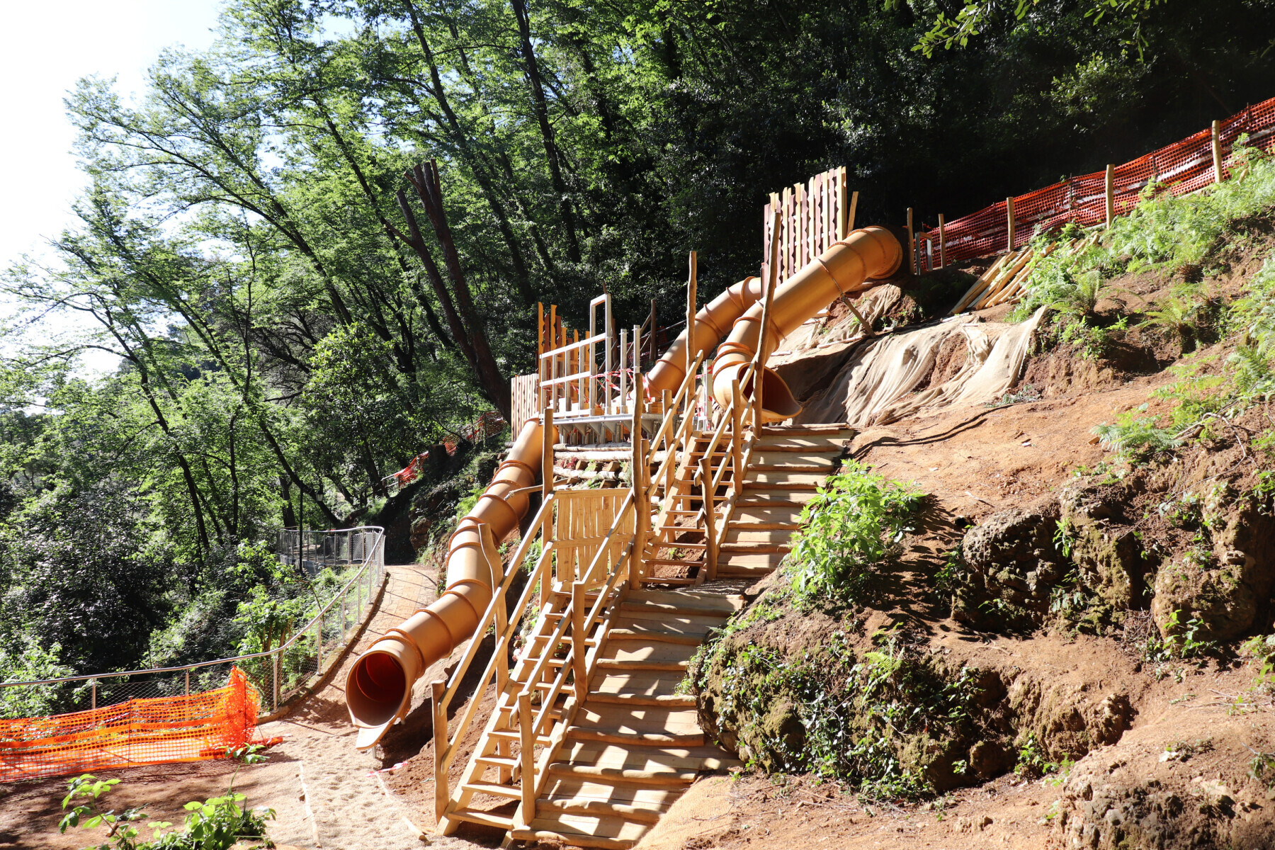 Dank der kürzlich beendeten Arbeiten wurde der romantische Spazierweg "Passeggiata dei Baci", welcher in Portofino endet, mithilfe der Installation unseres maßgeschneiderten Spielplatzes - dem ersten in der Örtlichkeit - noch attraktiver gestaltet. Das Robinienholz fügt sich wunderbar in bewaldeten Kontext ein, und die strahlenden, goldenen Tunnelrutschen werden durchaus einem außergewöhnlich Ort wie Portofino gerecht.