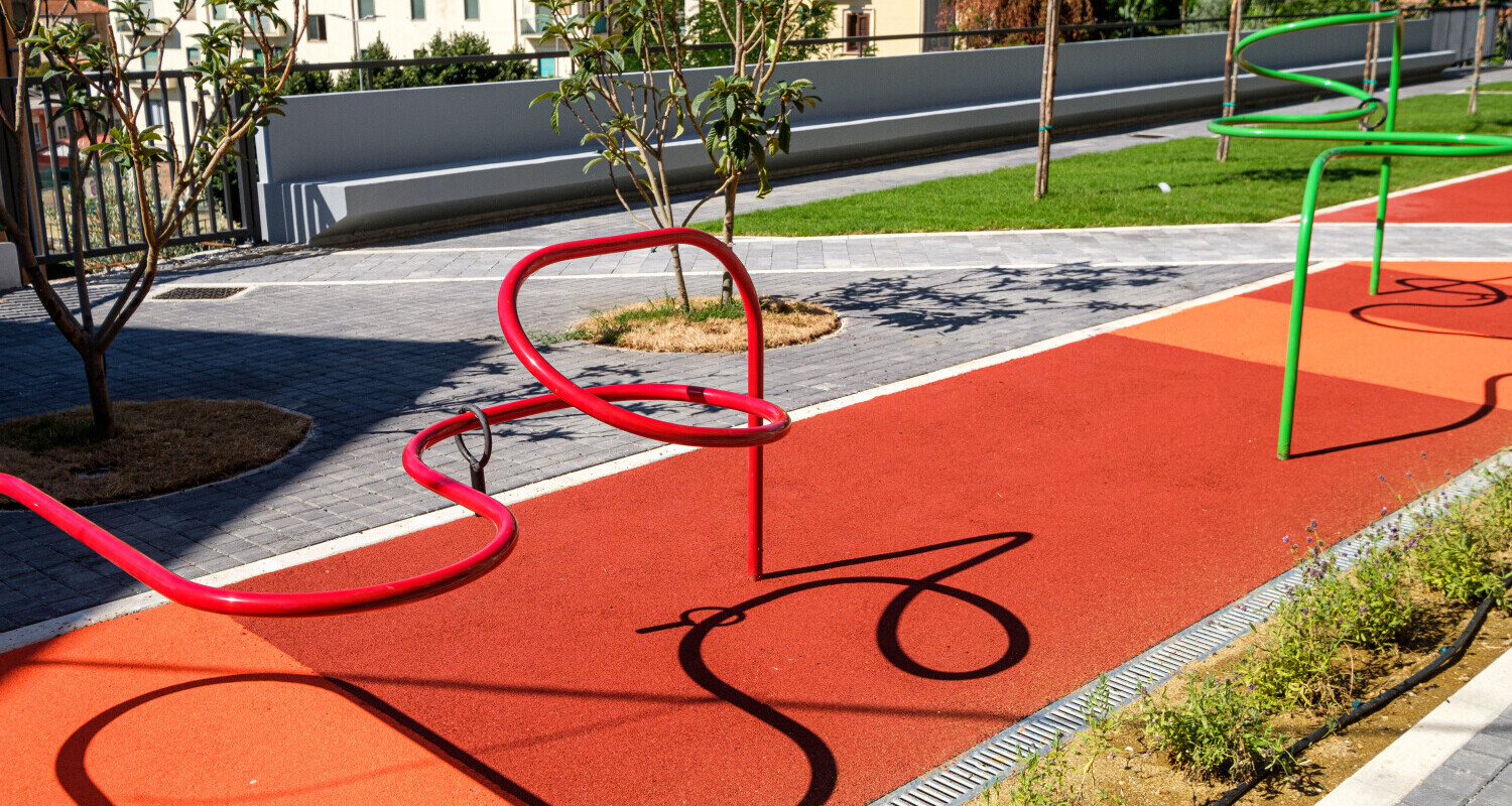 At Holzhof, safety matting comes in all shapes and colours. To start off with, we offer our customers Playlastic, a cast flooring made of colourful rubber granulate, which can be easily laid on permeable tarmac or cement floors, and rubber granulate panels in different thicknesses with smart connection systems. Thanks to countless design possibilities, Playlastic is itself a game, and provides a decisive advantage in that it is barrier-free, thus also allowing wheelchair access to the games.