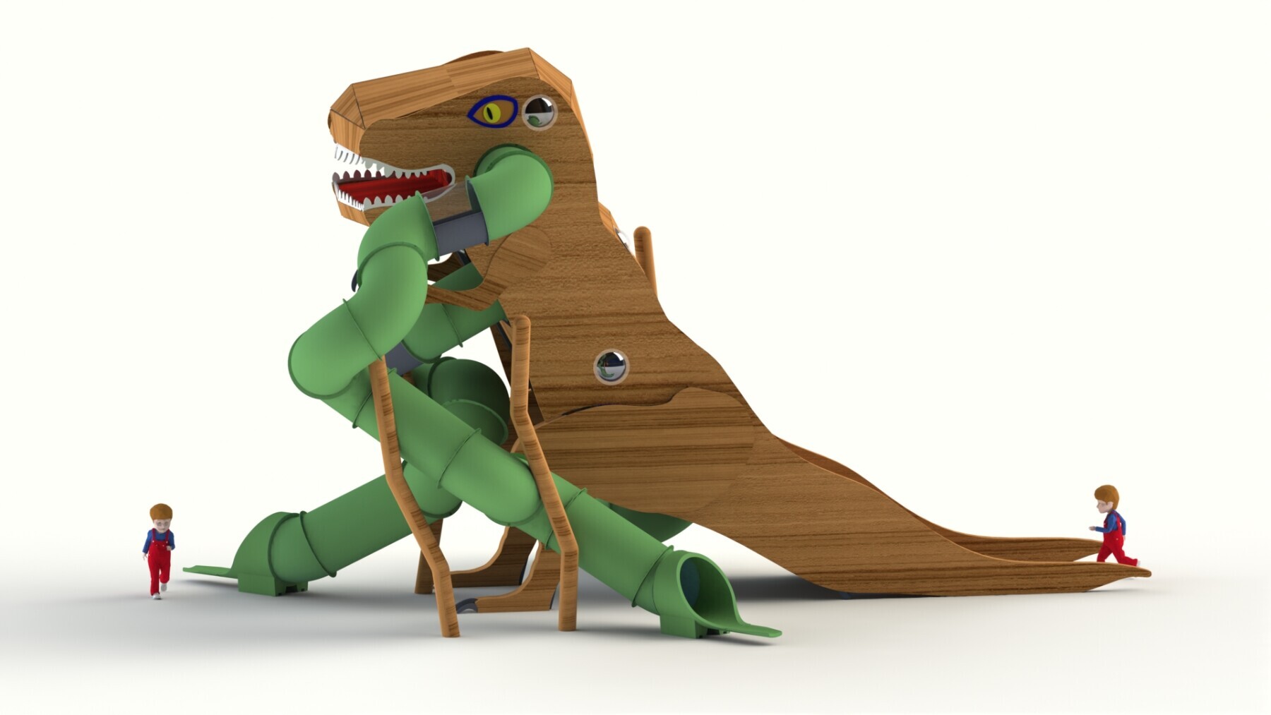 La linea completa Fantasy in catalogo conta oggi 14 installazioni-gioco e culmina con il nostro Dinosauro T-Rex: un gioco dalle dimensioni davvero imponenti: 18x11 metri lineari e quasi 5 metri di altezza!