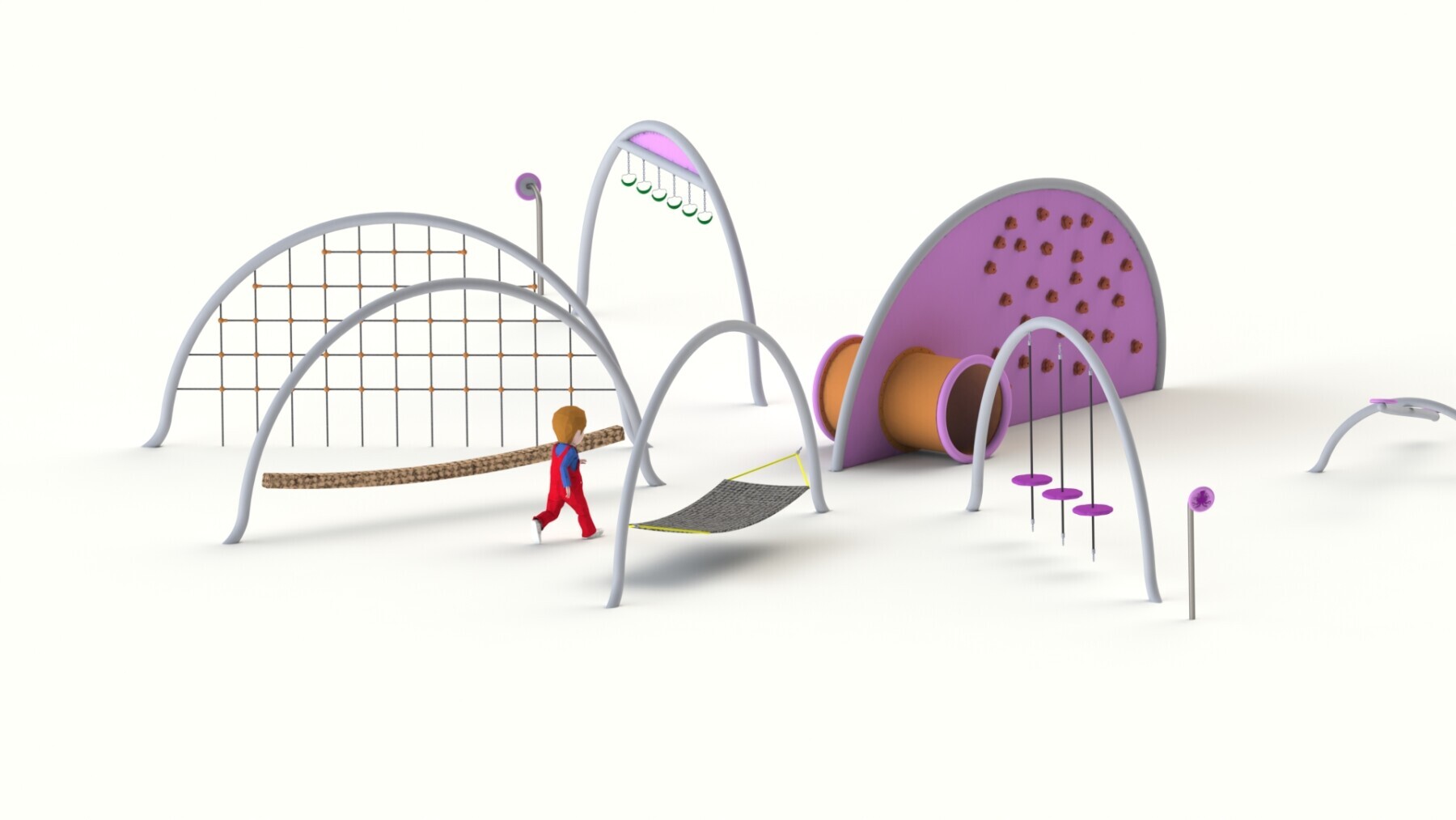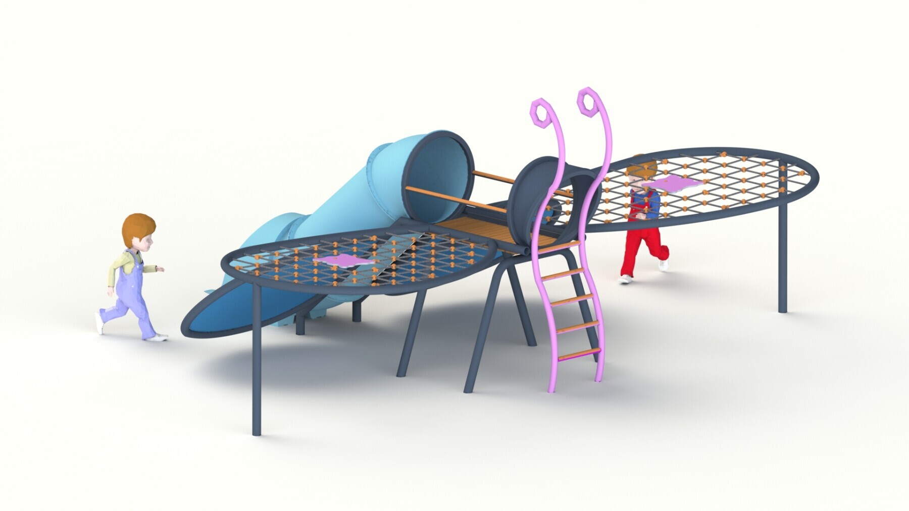 Tutti i giochi sono caratterizzati da una struttura centrale con scheletro portante in alluminio raffigurante un animale (farfalla, libellula, orso…) oppure soggetti fantastici legati all’immaginario collettivo (drago, dinosauro…). La scelta di questi particolari soggetti è stata fatta con l’intento di emozionare - anche solo attraverso uno sguardo.