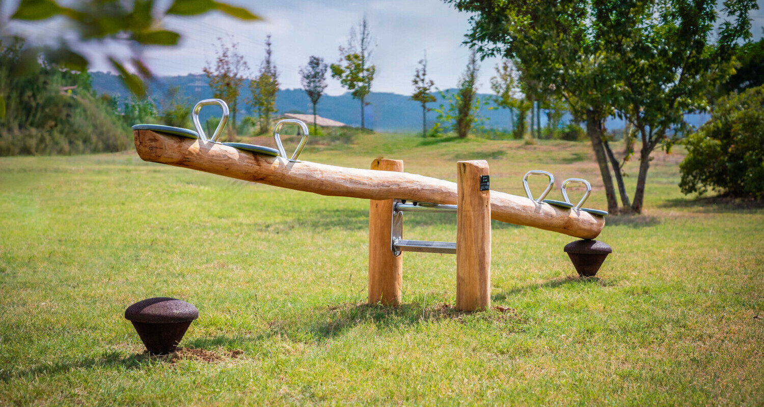 Wippe Country Robinie xrd40 aus Robinienholz bestehend aus: Wippbalken aus Robinienholz, 400 cm lang, mit vier Haltebügel aus Edelstahl. Wippvorrichtung aus Robinienholz mit selbstschmierenden Lagern. Vier eingekerbte Rundsitze und zwei Gummipuffer xp190 zur Schlagdämpfung. Feuerverzinkte Schrauben mit Kunststoffschutzkappen.