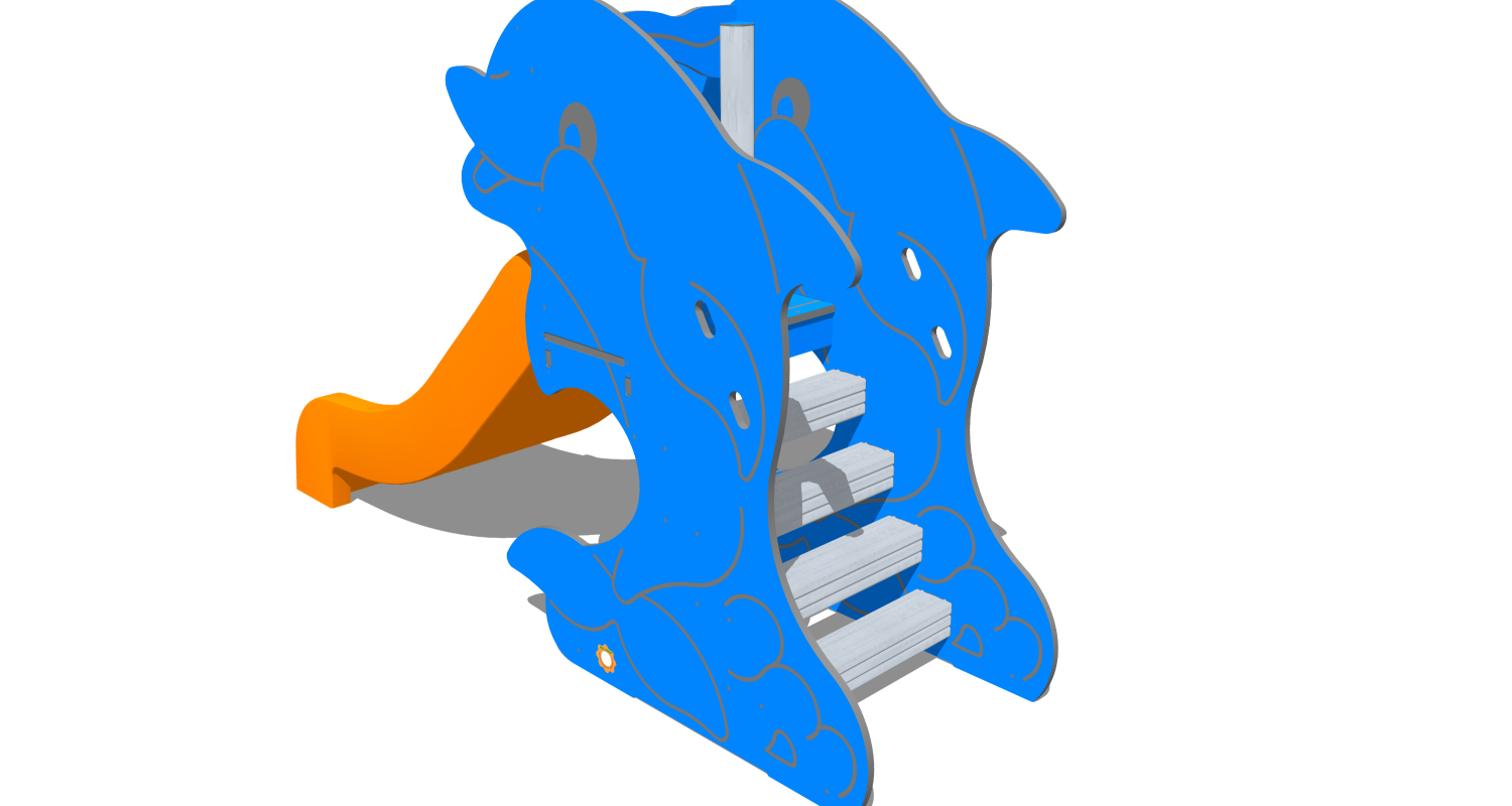 - sagome in pannello pe compatto riciclato a triplo strato bicolore con sembianze di delfino sp.19 mm;