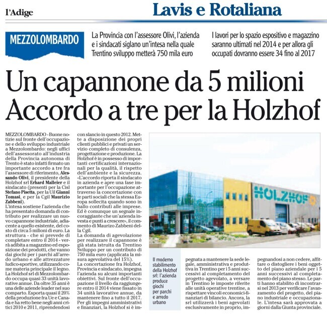 Un articolo pubblicato su un quotidiano locale a proposito del nostro nuovo capannone, ormai in fase di costruzione.