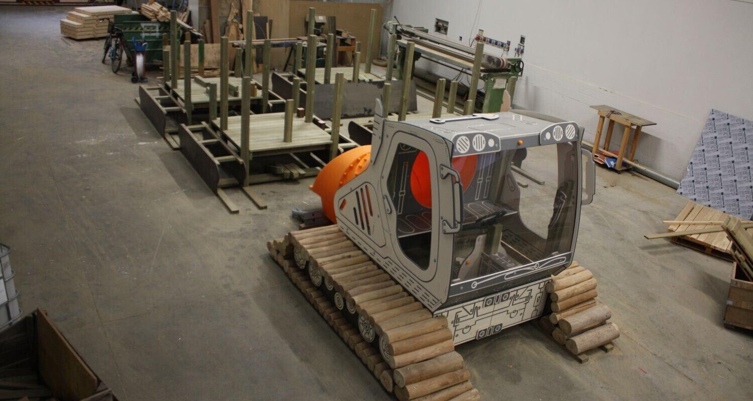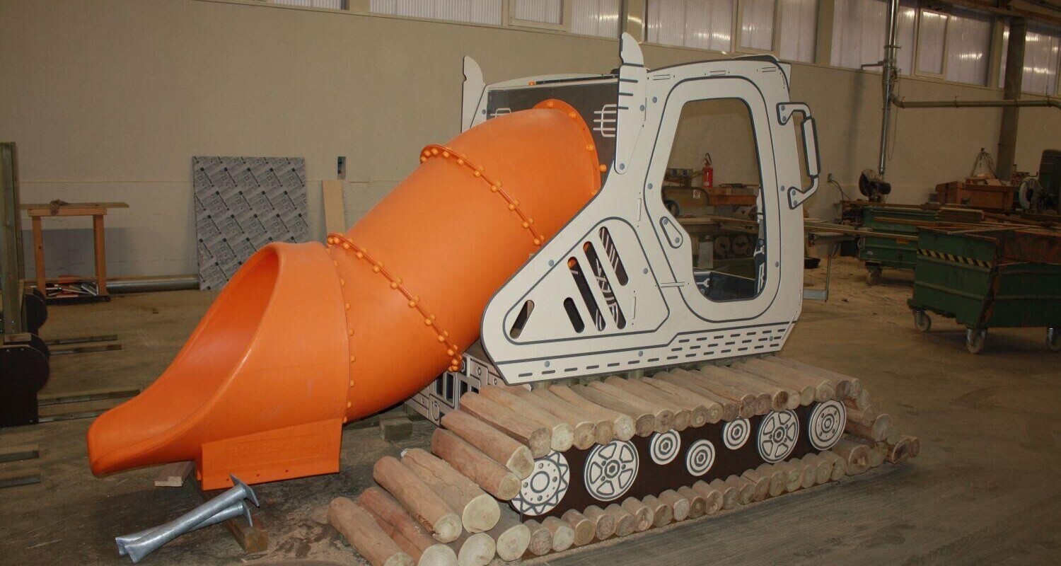 Tra dicembre del 2017 e gennaio di quest’anno ci sono arrivati ben cinque ordini per la stessa struttura a tema, il nostro ormai noto gatto delle nevi, che con questo si aggiudica indubbiamente il titolo di best seller dell’inverno 2017/2018. Uno di loro è già pronto per lasciare il nostro stabilimento e giungerà a breve alla propria destinazione. Per la preparazione degli altri quattro stiamo lavorando a pieno ritmo, per far sì che anch’essi siano completati il prima possibile. In questa fase di costruzione, la struttura portante – solitamente nascosta sotto i pannelli in polietilene – è ben visibile e ci permette di farci un’idea concreta delle caratteristiche strutturali del prodotto.